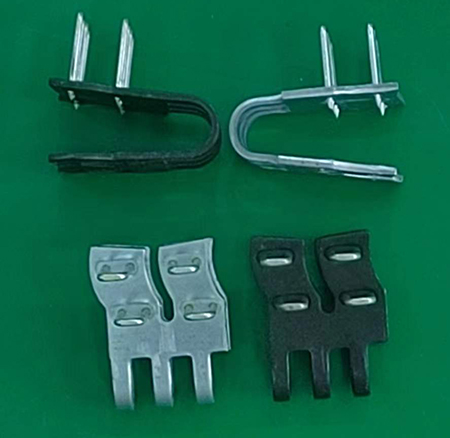 T14系列輸送帶扣雙排扣結構,適用于強度等級不大于1600N/mm輸送帶的聯接。用T10D型拉桿式訂扣機裝訂帶扣。