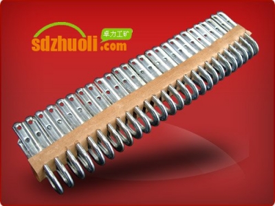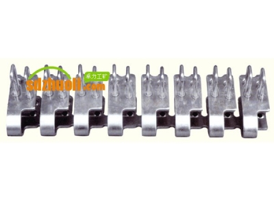 狼牙扣產品特點:板材成形,接頭低平,減少輸送帶運行的阻礙;短扣體結構,適應輕型輸送機的小滾筒要求;連體式帶扣,抗拉強度高。出廠配置:一種長度規格的狼牙扣8根。型號 適用帶厚(mm) 拉力強度(N/mm) 滾筒最小直徑(mm)55# &nb