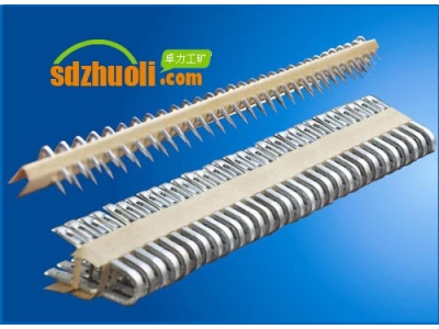 狼牙扣產品特點:板材成形,接頭低平,減少輸送帶運行的阻礙;短扣體結構,適應輕型輸送機的小滾筒要求;連體式帶扣,抗拉強度高。出廠配置:一種長度規格的狼牙扣8根。型號 適用帶厚(mm) 拉力強度(N/mm) 滾筒最小直徑(mm)55# &nb